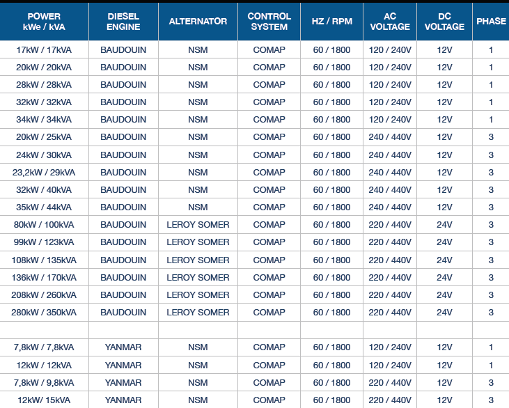 NorthForce generator sets are assembled around recognized engine, alternator, and control system brands selected for reliability, serviceability, and long-term support.